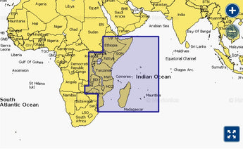 Coastal coverage of the east coast of Africa from Maputo Bay to the Horn of Africa, Zanzibar, Madagascar, Mauritius, Reunion and the Seychelles. Coverage includes the ports of Maputo, Mozambique; Dar es Salaam, Tanzania and Mombasa, Kenya.