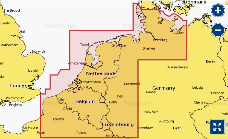 Detailed coverage of the North Sea coasts of Belgium, Netherlands and Germany including the interior waterways and canals of the Benelux countries and the Baltic Sea coast of Germany to Wismar. Coverage includes the Kiel Canal, the Waddenzee, the IJsselmeer, the Rhine River to Koblenz and the ports of Calais, France; Antwerp, Amsterdam and Rotterdam, Netherlands and Hamburg, Germany.