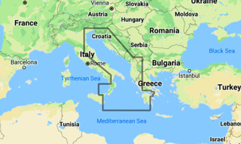 C-MAP Max-N+ Local Chart coverage the Adriatic & Ionian Seas.