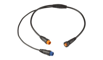 This adapter cable allows the echoMAP CHIRP or GPSMAP 10X2xsv/12X2xsv to continue to display water depth from the in-hull transducer in instances when the transom mount transducer loses depth reading due to cavitation.
