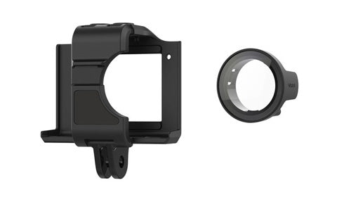 This cage mount is the smallest and lightest way to mount your compatible action camera. It has a fast-locking clamp with wind noise reduction and comes with a protective lens cover.