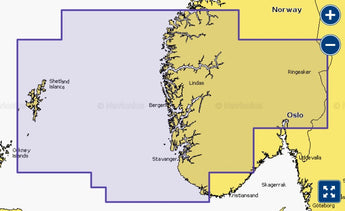 Detailed coverage of the Norway coast from Farsund to Maloy, including the Shetland Islands and the Sognefjord. Includes detailed coverage of Bergen, Haugesund and Stavanger.